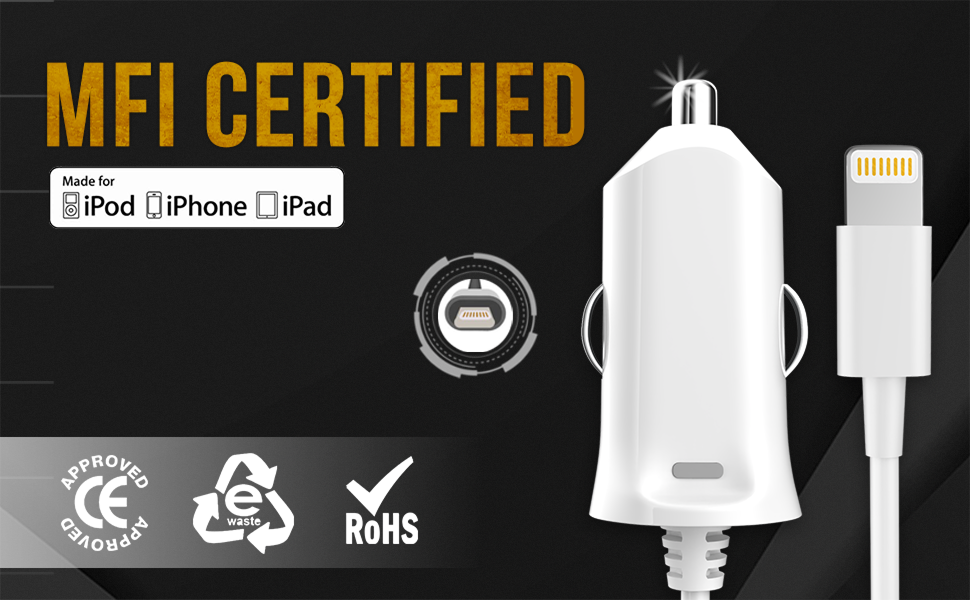CERTIFICATION: Our Car Charger is MFI certified for all ios devices - iphone, iPad, iPod, Mac 2013 & older