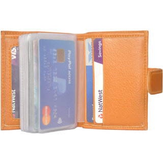 Know MoreThis Card Holder is RFID Protected and its made of Leatherite. This mini stylish card wallets or Atm Holders. The high quality Multi credit slots and clear layout design is made for you to keep your cards organized well and easily use. This Thin card holders can hold and cover 14 clear plastic pockets and 3 further card slots, 1 ID card slot and Cash Slot with Stud fast button to give it a compact look. Many wallets for men women are thin and small in size so cannot fit in front pocket and cant store much, but this latest card holder of long type have enough pockets or slots that can store your card in your purse. This Latest Stylish Leatherite card holder wallet is slim and hand crafted in India to promote the original goods manufactured by best working hands of India. The design of this card holder has enough slot for your card and money with proper protection and window slots for id and coin. So feel pride in using this unisex branded Atm wallet because its a MAKE IN INDIA product. Ideally meant for boys girls this branded card holder comes with super soft skin friendly carrying slim and small pouch cover bag to promote the handmade products. This is a perfect gift for your loved ones. Can be used a gift for both gents and ladies. So keep the combo of your card cash or money completely protected with this latest branded stylish wallets. Comes in a beautiful gift box